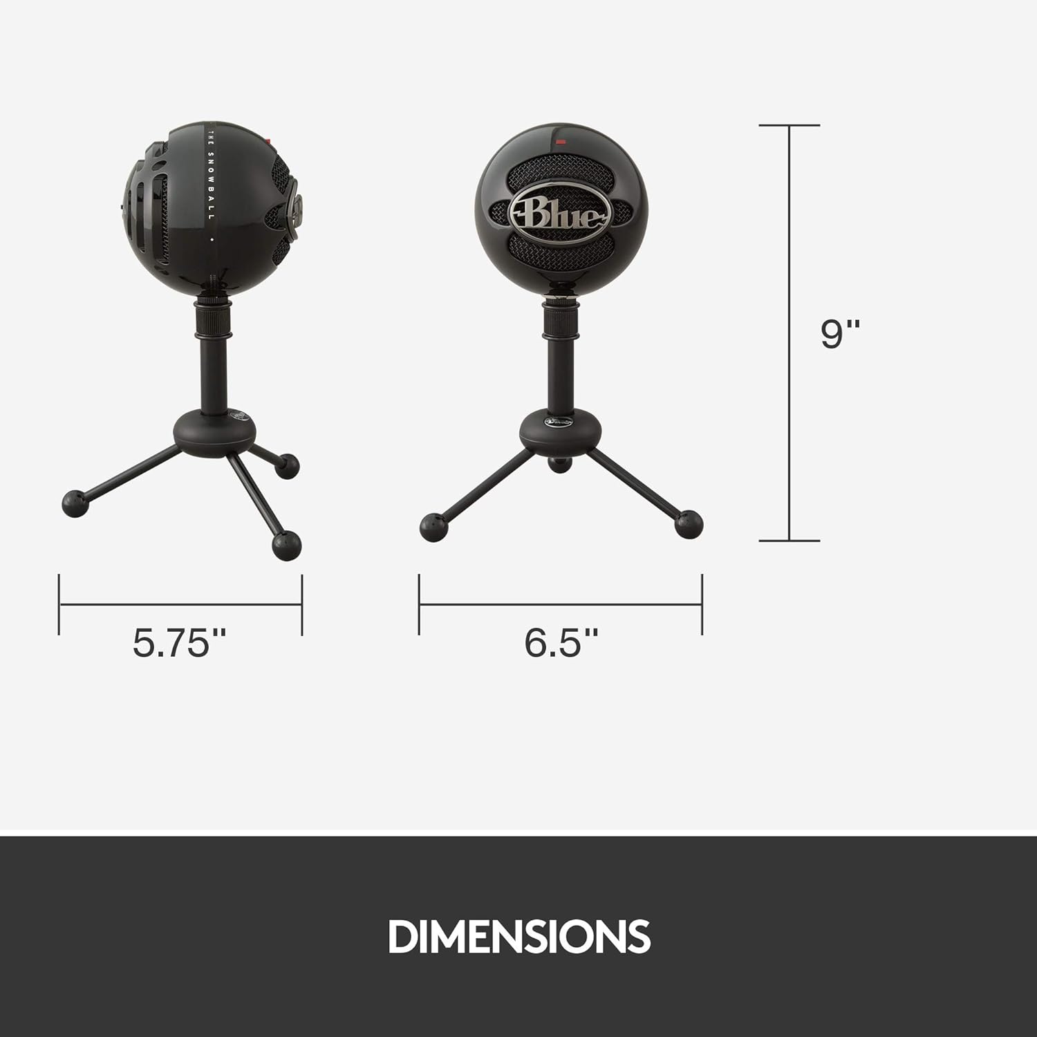 Blue Snowball USB Microphone for PC, Mac, Gaming, Recording, Streaming, Podcasting, Condenser Mic with Cardioid and Omnidirectional Pickup Patterns, Stylish Retro Design – Black