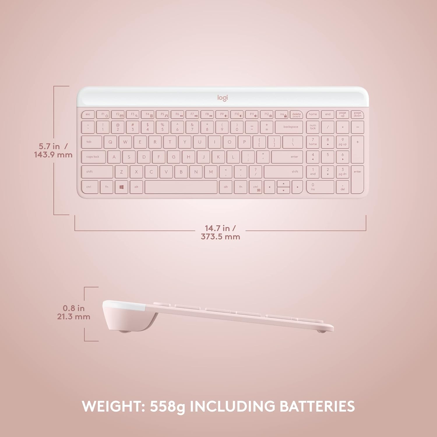 Logitech MK470 Slim Wireless Keyboard and Mouse Combo - Modern Compact Layout, Ultra Quiet, 2.4 GHz USB Receiver, Plug n' Play Connectivity, Compatible with Windows - Rose