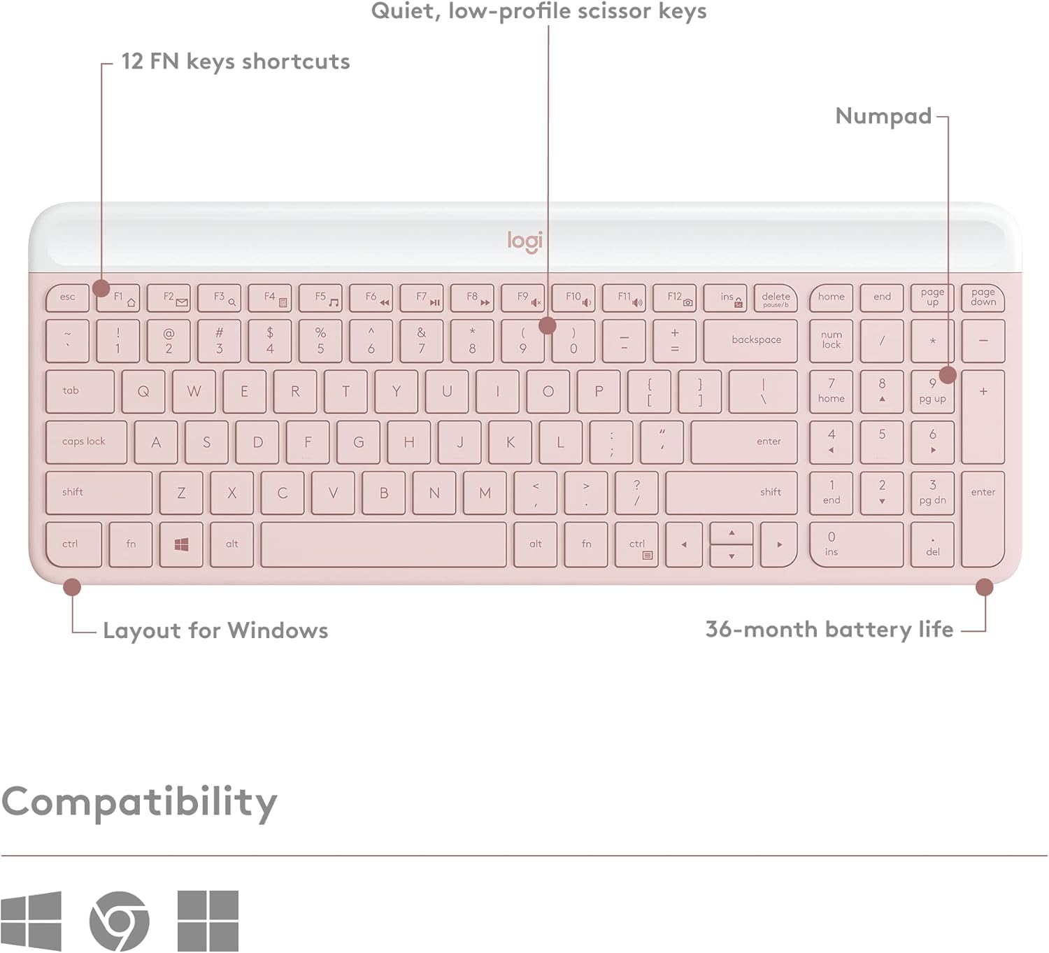 - Logitech MK470 cordless combo features a compact modern designed keyboard with low-profile scissor keys, a number pad and a layout optimized for Windows