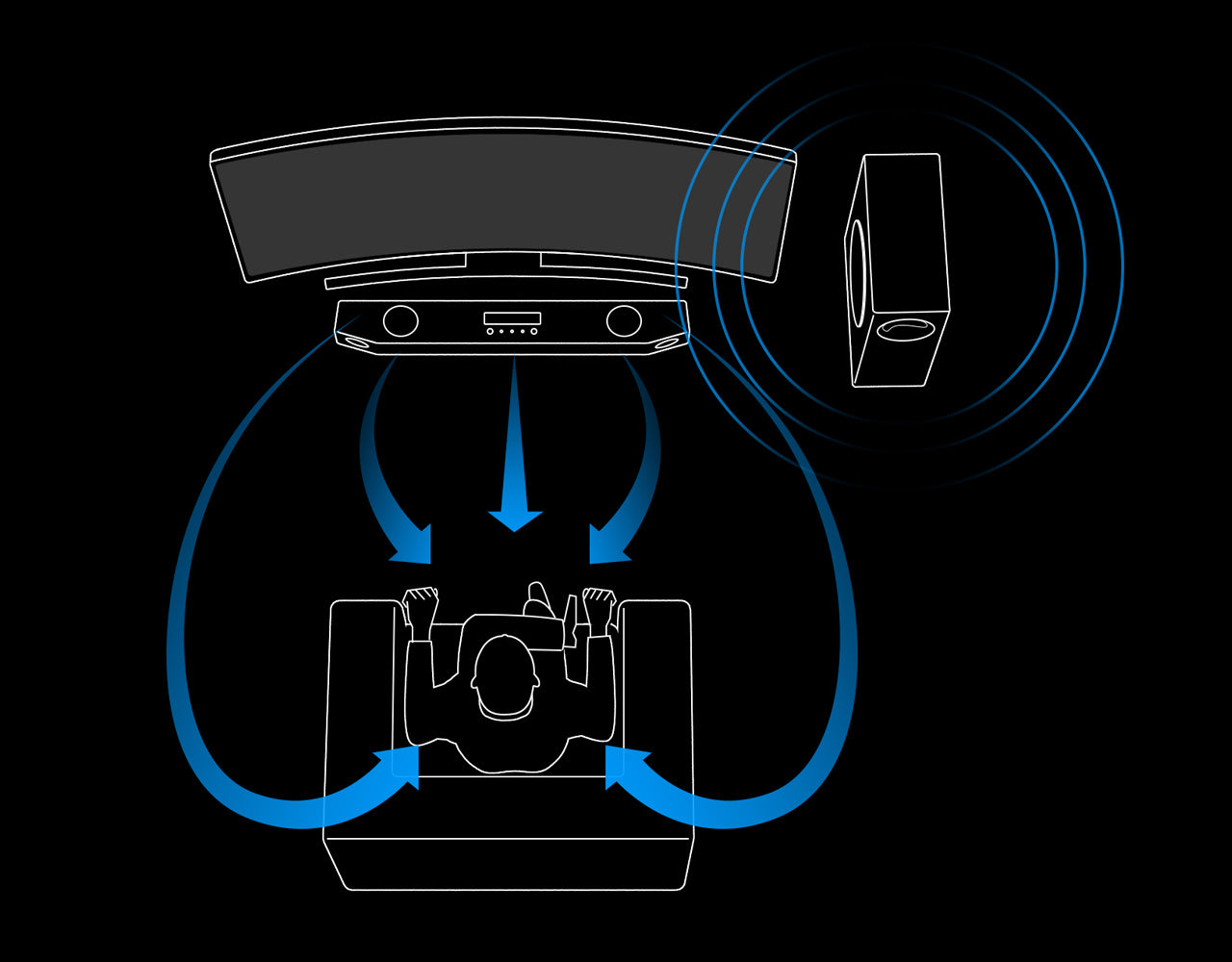 The Katana houses a 5-driver design - two up-firing midbass drivers and two high-excursion tweeters in the soundbar, and one long-throw driver in its subwoofer.